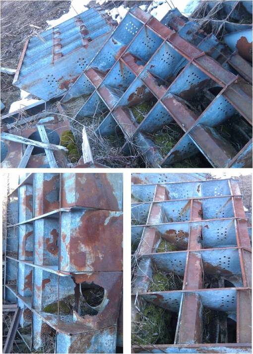 The first evidence that appeared regarding what this farm produced is the following piece of galvanized metalwork found next to the harvesting equipment.