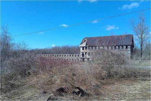 From this corner at the west end, looking in through its windows, you could tell there was a lot of interesting history to this building. By now, the large number of chicken coops made me suspect this was a large egg-producing farm. However, its appearance was quite different from the another farm I used to go by every morning on the bus headed to school. That facility was equal in size but was constructed of wood and had a gambrel roof. You knew you were close to it once you began to hear the loud clucking in the background heading down to New Hamburg on the edge of the Hudson River.