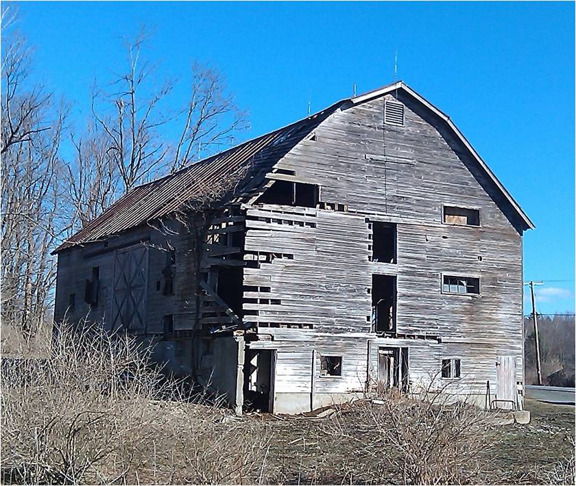 During the early 1800s, Dutchess County farms were developing from a Stage 2 to early version of the Stage 3 model of Sequent Occupancy. During the Yellow Fever epidemics prevailing on and off between 1800 and 1825, the staple foods needed by New York city were provided by the Dutchess county farmers. This meant that Dutchess county farming had transitioned from being a pioneer industry to an early business-like setting. For the most part, the farms in Dutchess County retained this combination of Stage 2 and Stage 3 styles of business as the locals continued to provide their products to local families and grocery stores and in large amounts to New York city down below. By the late 1800s, some of these local farms had evolved into “big businesses”, but were not yet large enough or industrialized enough to be what we refer to today as agribusinesses. This type of farming setting produced the stage 3 building that was photographed and described above. This next building on these premises is a Stage 4 sequent occupance structure. It demonstrates the major changes that occurred when the local “big business” of farming became the early version of what we today refer to as agribusiness ventures.