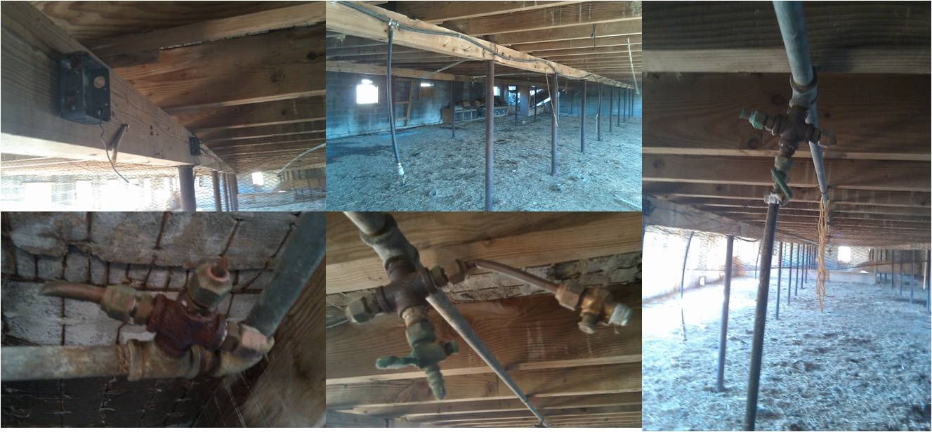 There were also this rubber hosing used as water lines, and a thin layer of hay found all along the floor, serving to produce a humidity that was cooling and more conducive to the healthy survival of the fowl.