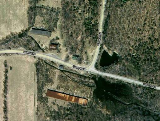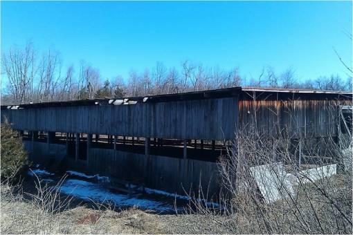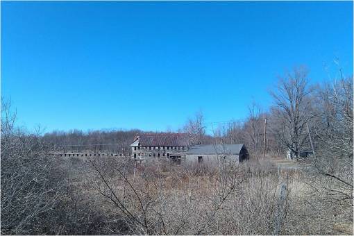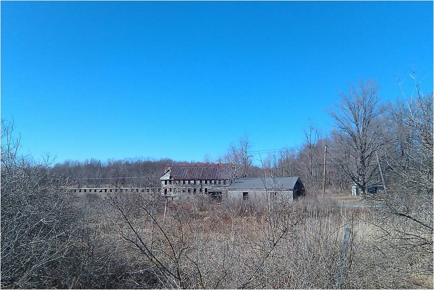 Heading back out of this facility, followed by a walk back towards the road, one can see another large series of buildings in the distance behind a lot of young trees and shrubs. Throughout the years of driving by this place, this building structure changed from plainly visible to barely visible except during the winters. My assumption was always that this was some sort of place where cattle and/or horses were kept.