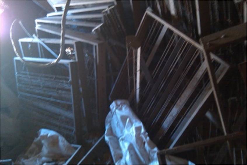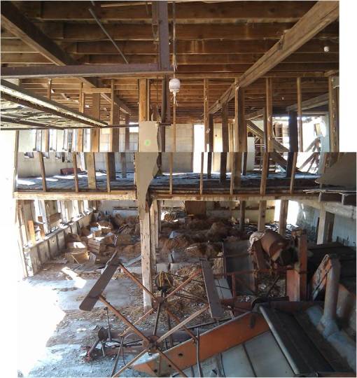 To make my way to the second floor I had to back track a little to go up the stairs positioned close to the entranceway. On the second floor there was more sawdust like cover and a number of other contraptions raising my curiosity about this place. At its far east end there was a vacant room, still very clean relatively speaking, which I suspect to be some sort of combined office and storage space.