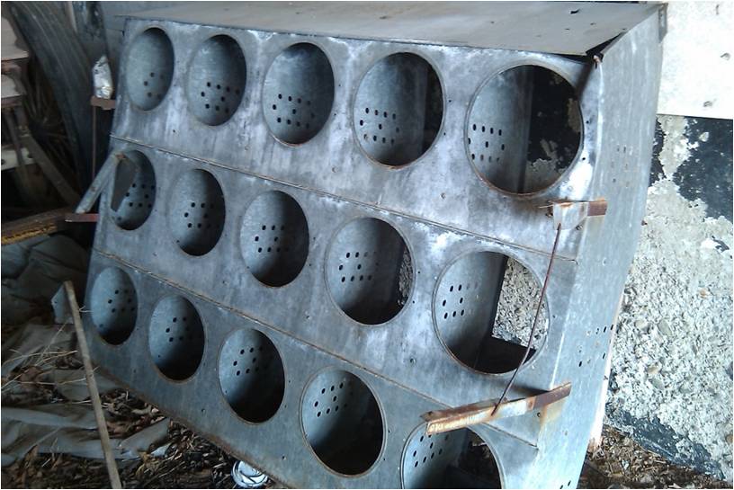 A couple of feeding devices were found at the far east end of the facility. Some were adopted from barrels, the largest was a device actually made for this use.