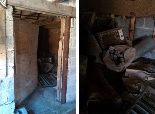 In the following views of this building through the east face side window, we get a better idea on how the inner space was used. Access to the second floor was no longer possible. There was never an inside stairwell built for this and any outside stairwell built had long since rotted away.