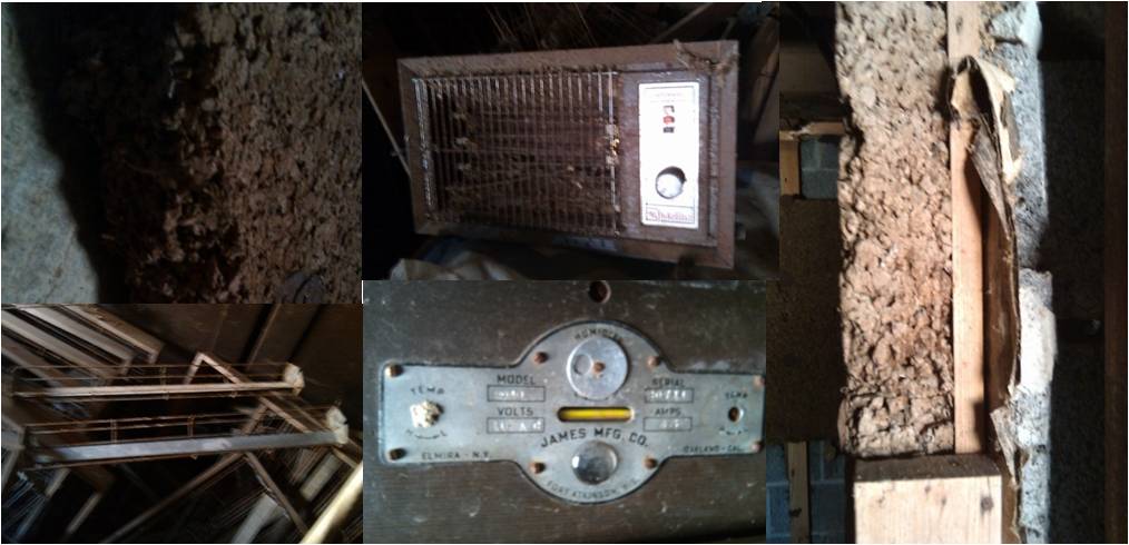 One might immediately think that this was where the eggs were collected for sale as food items. But the fact that the special units were there with temperature and humidity controls told me this was an incubation room. This was a room used to keep the eggs until they were ready to hatch. The framing was used to hold the eggs, and were three very large units produced by James Manufacturing.