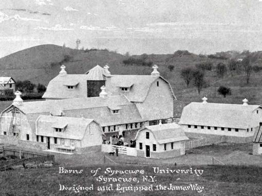 One might suppose that “a barn is a barn”. The stereotype we assign to barns is different today from it was around the end of the 19th century. For those of us old enough, we can probably remember that scene from Witness with Harrison Ford and Kelly McGillis in which an entire Amish town took a day to raise a barn for a newly wed couple (a German version of this part of the movie is at YOUTUBE at http://www.youtube.com/watch?v=BXI-e8p1Adc&feature=related, but see also http://www.youtube.com/watch?v=_C2eAqBfvqM&feature=related). Those days of community activities in Dutchess County history were long gone by the end of the 19th century. The older style barn was being replaced by a newer much lighter form designed to go up faster and handle the much larger amounts of produce that had to be managed. Accompanying this change in the independent family setting was the development of a number of new programs designed to recover some of the lost forests for the region. It was this absence of wood locally that was forcing the industry to develop this new type of barn during the early 1900s, one that required less board foot volume per building. But this also meant that the architecture behind the building of a barn would also have to change.