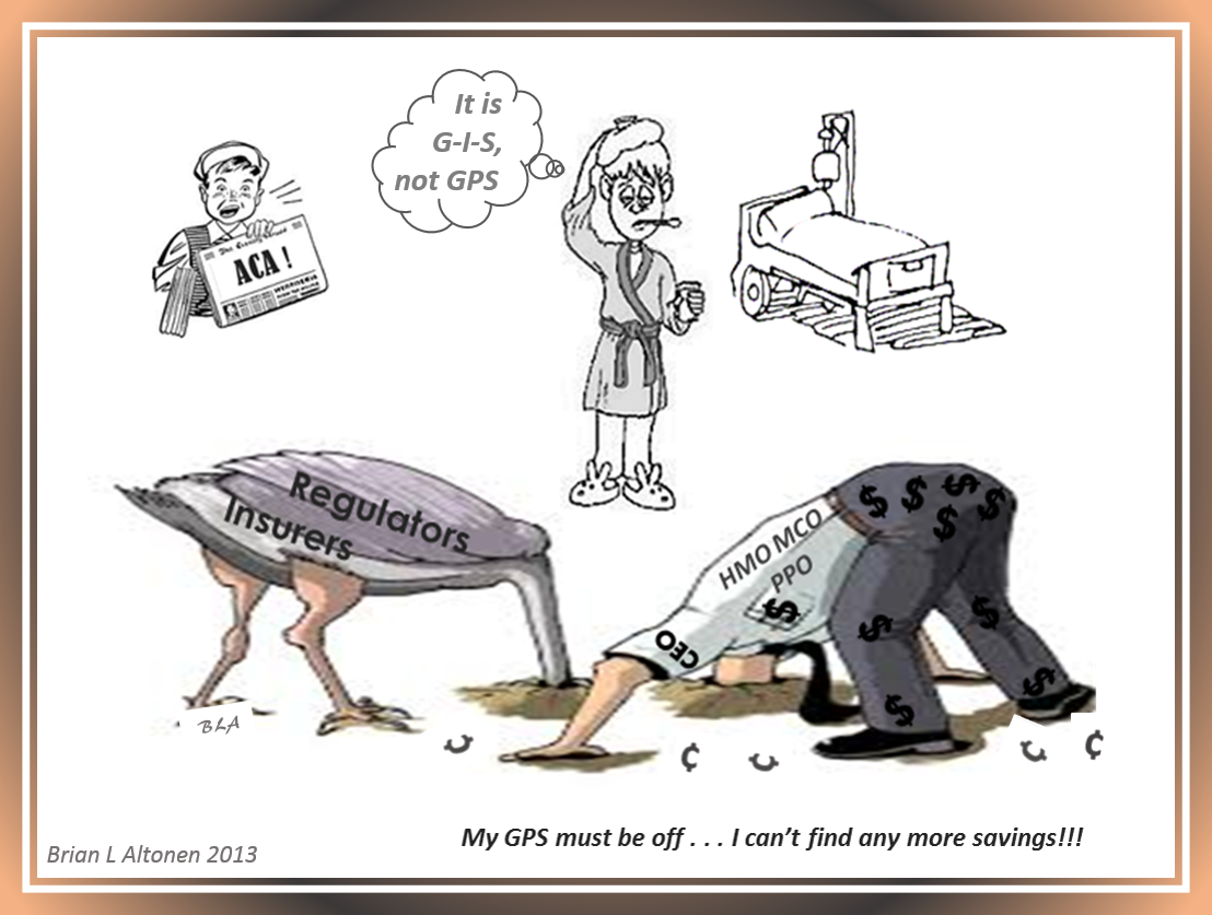 Like the Ostrich and CEO in the cartoon up above illustrate, you can only search for so long in the darkness of the old archival way of thinking and analyzing that we make use of daily in the Health Care Insurance and Cost for Services world. We can only focus on trying to save more, even at the expense of limiting care elsewhere, for only so long before the industry topples due to its complacency about the real world out there–the patients, not the investors in our stocks.